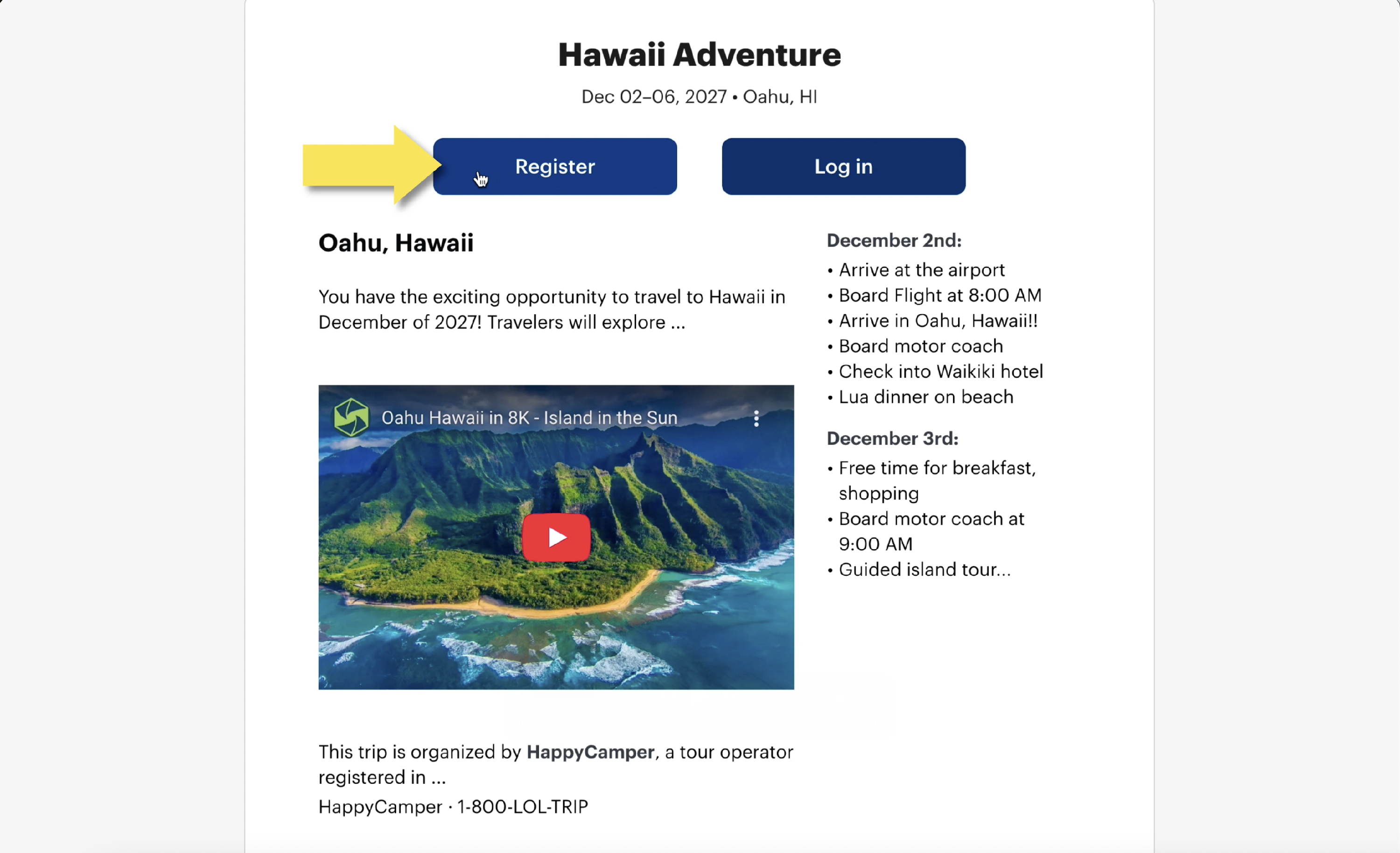 If you were given a link to a trip registration page, visit the page and click the Register button.