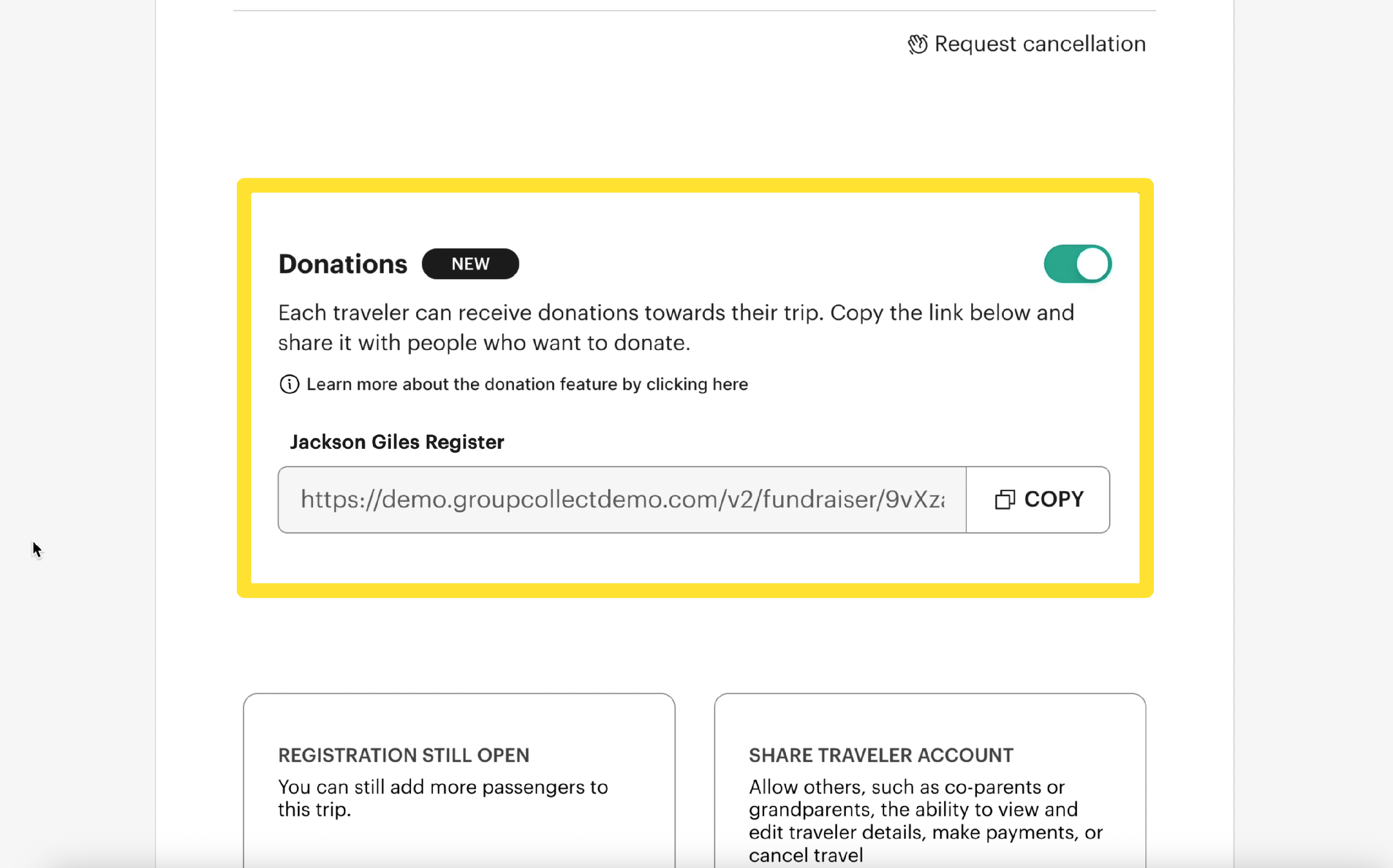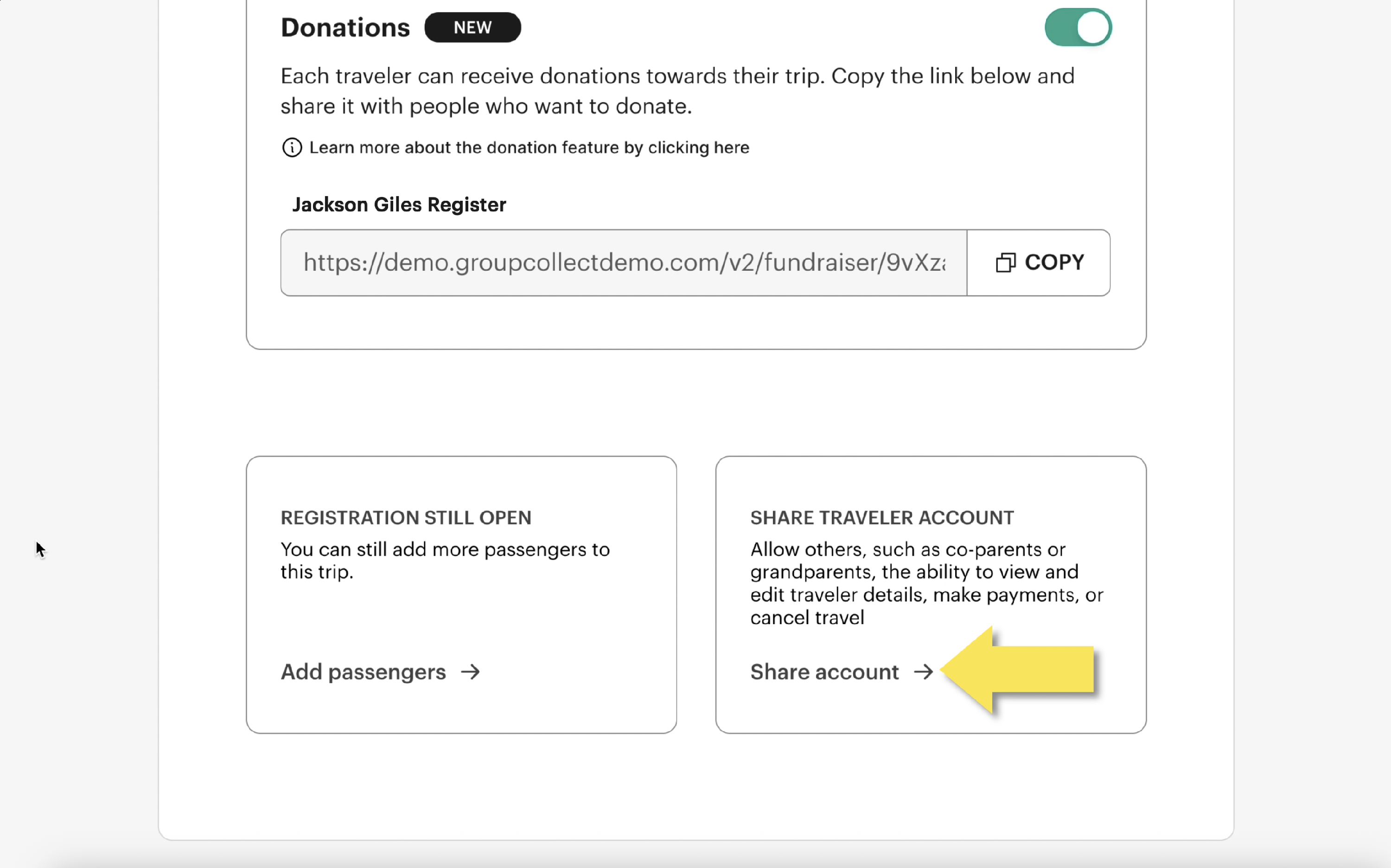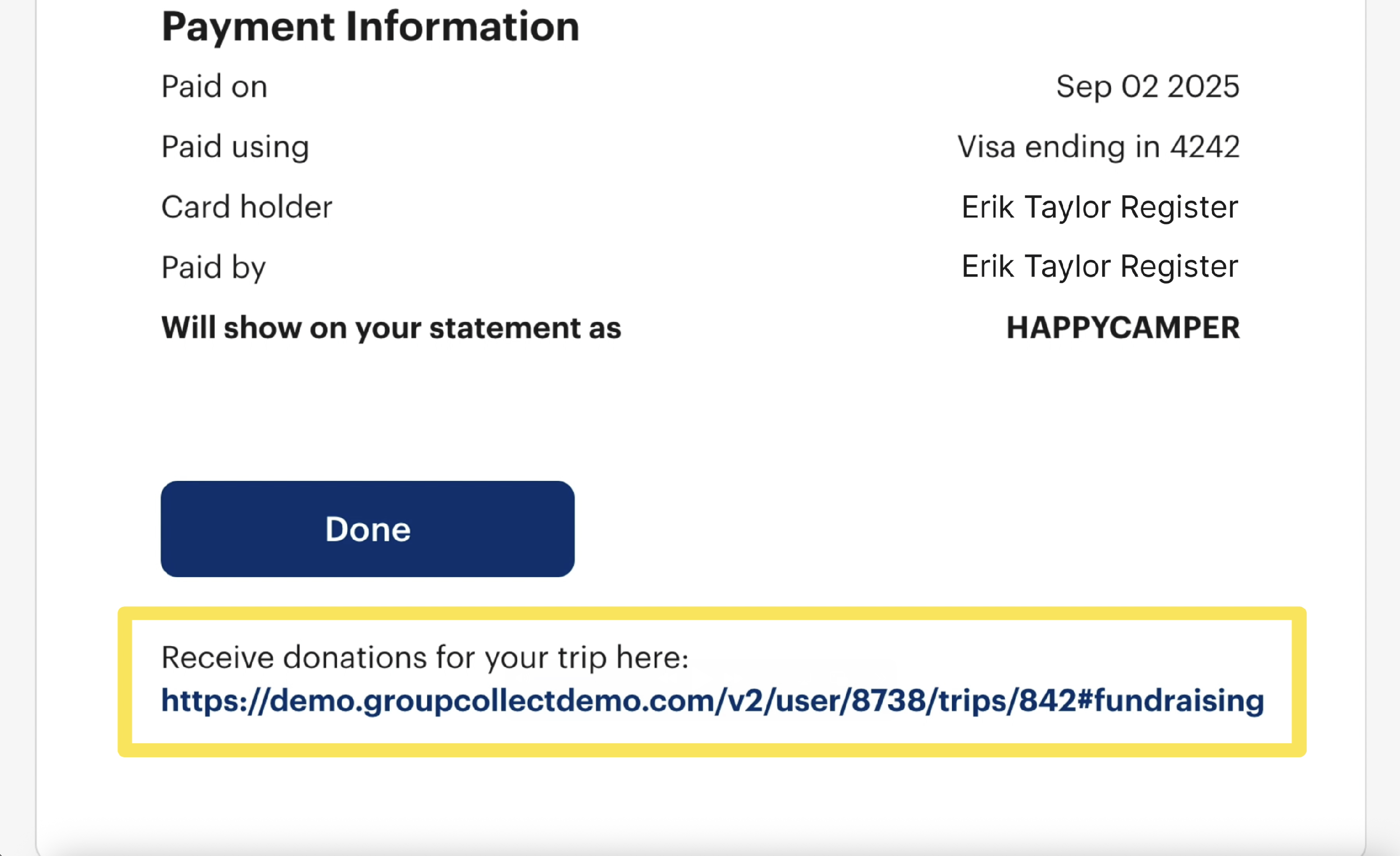 Now that you're registered, you'll also have access to your individual fundraising link. If you share this link, generous family members and friends will be able to contribute to the cost of this trip by making an simple and secure online payment. The donor will not need to create a profile to make their contribution.