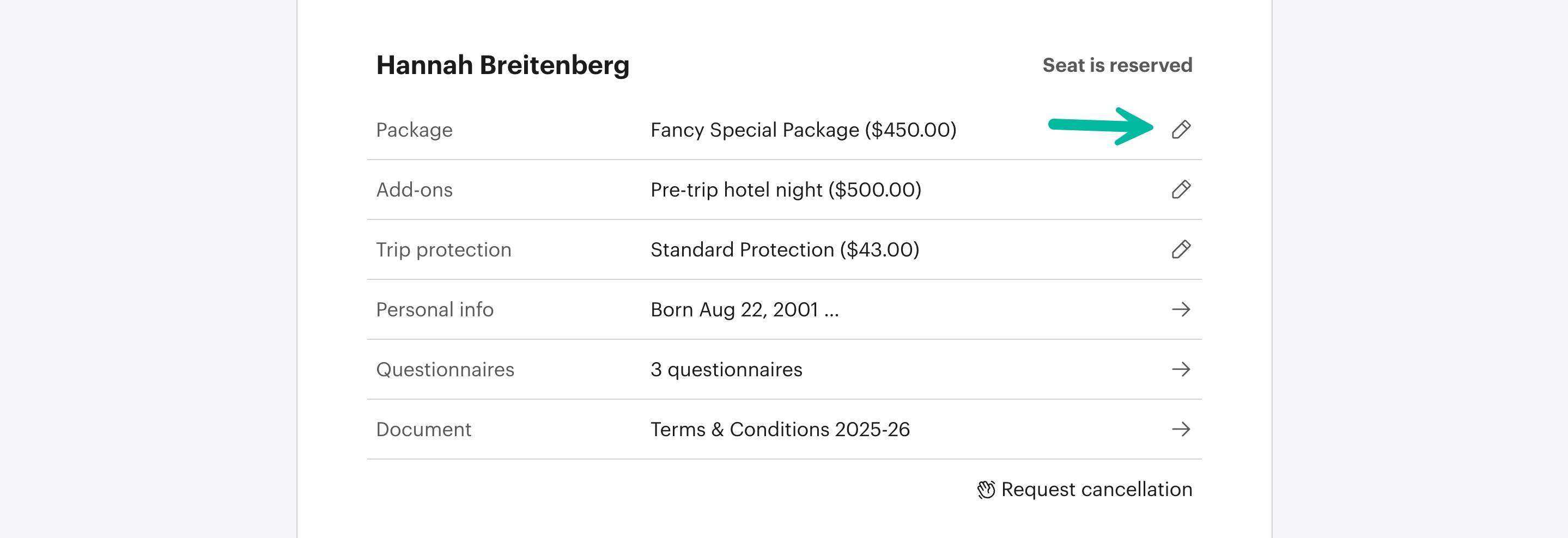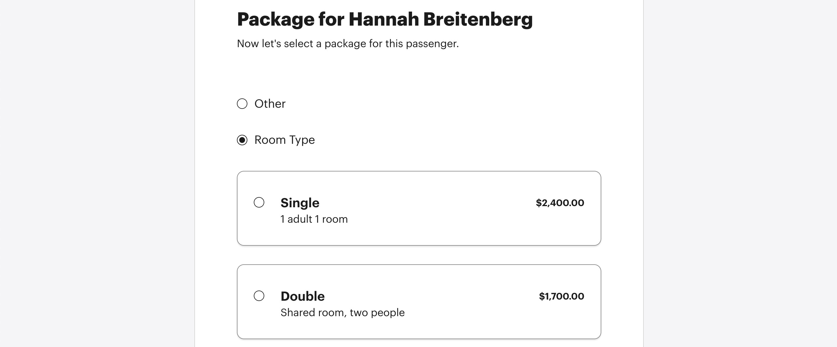 Then, choose the new package you would like the passenger to be in.